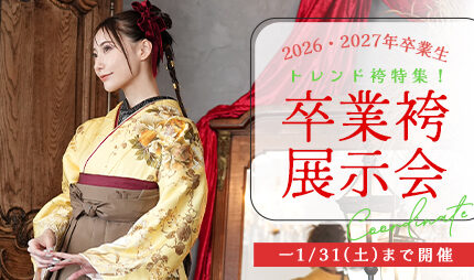 Campaign キャンペーン 千成屋で開催中のお得なイベント&キャンペーン情報をイチ早くお届けします! 2025.12.27 【2026年卒業】卒業式袴展示会 2025.07.31 教員袴プランのご紹介 2025.04.01 【2026年卒業】高校3年生向け!卒業式袴特典 2024.12.25 【卒業式袴】振袖×袴特集! Hakama Coorde 卒業式袴コーデ 千成屋の最新卒業式袴コレクションをラインナップ!スタッフいち押しの振袖コーディネートをご紹介。 Plan & Price プラン・料金 Shop List 店舗情報 さまざまなコンセプトに基づいたお店作りで、どこにもない魅力的な店舗展開をしています。 029-272-6422 振袖・卒業袴・男性袴・貸衣装・観光きもの・ゆかたレンタル 0299-94-8080 振袖・卒業袴・男性袴・貸衣装・七五三・お宮参りなど家族の記念撮影 029-219-7728 七五三・お宮参りなど家族の記念撮影、お参り当日、お呼ばれのお支度 お電話またはWEBにてご予約受付中!当日のご予約はお電話で受け付けいたします。 最新情報 お知らせ キャンペーン お役立ち情報 2026.01.05 お知らせ 成人式期間休業のお知らせ 2025.12.27 キャンペーン 【2026年卒業】卒業式袴展示会 2025.12.12 お知らせ 年末年始営業日のお知らせ 2025.07.31 キャンペーン 教員袴プランのご紹介 2025.04.23 お役立ち情報 【卒業式】今年人気のヘアセットは?事前の相談は必要?リアル先輩のお洒落な髪型… 2026.01.05 お知らせ 成人式期間休業のお知らせ 2025.12.12 お知らせ 年末年始営業日のお知らせ 2025.03.27 お知らせ 4月の営業日・臨時休業のお知らせ 2024.12.27 お知らせ 店舗休業日のお知らせ 2024.09.01 お知らせ 【終了】卒業式袴展示会 2025.12.27 キャンペーン 【2026年卒業】卒業式袴展示会 2025.07.31 キャンペーン 教員袴プランのご紹介 2025.04.01 キャンペーン 【2026年卒業】高校3年生向け!卒業式袴特典 2024.12.25 キャンペーン 【卒業式袴】振袖×袴特集! 2024.10.31 キャンペーン 【高校生向け】高校生袴*展示会 2025.04.23 お役立ち情報 【卒業式】今年人気のヘアセットは?事前の相談は必要?リアル先輩のお洒落な髪型… 2025.02.19 お役立ち情報 袴に合わせる足元は?ブーツ・草履どちらが良い? 2025.02.17 お役立ち情報 袴を着た時の注意点 2025.02.17 お役立ち情報 袴小物リストアップ 2024.08.27 お役立ち情報 高校生の卒業式におすすめの袴コーデ30選|お気に入りで晴れの日を Instagram ひたちなか本店 Instagram 神栖店